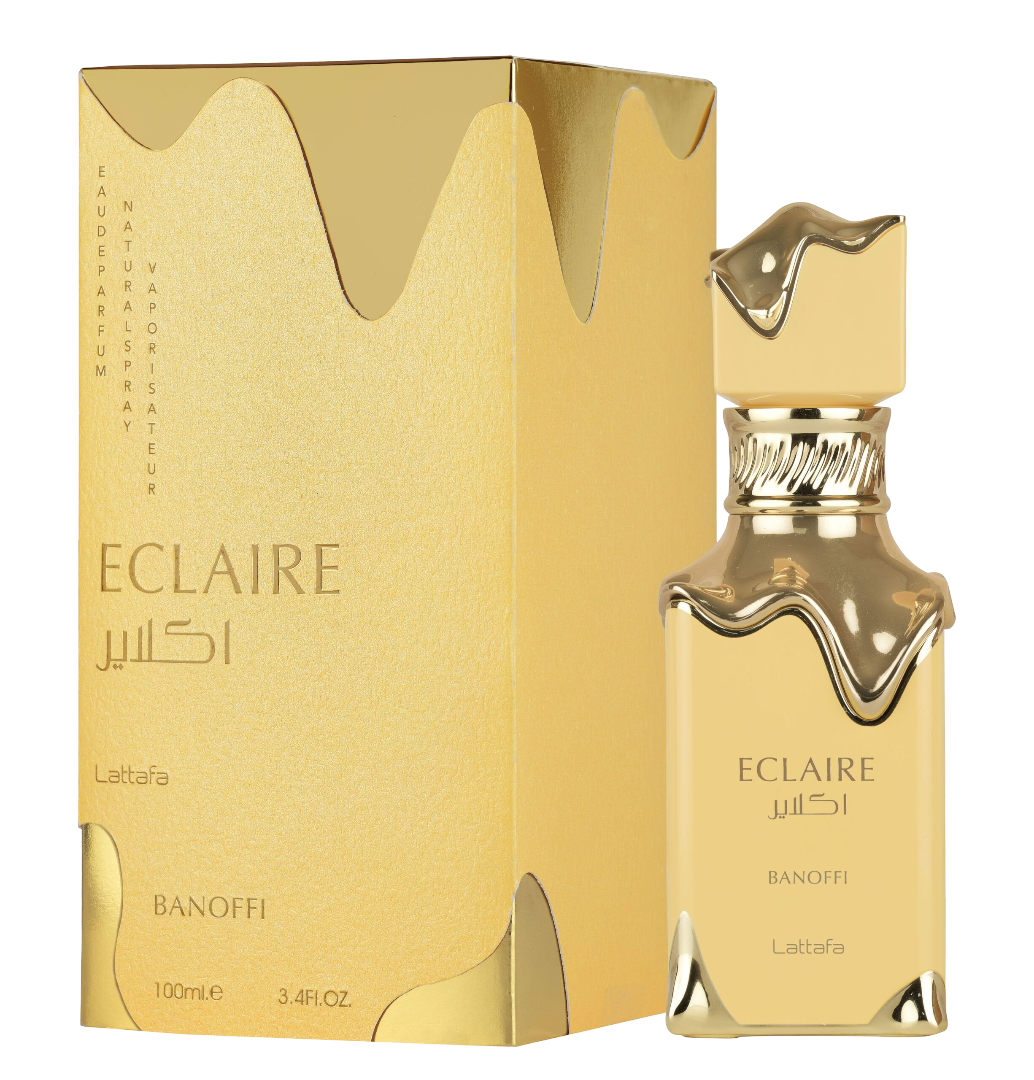 Eclaire Banoffi by Lattafa is a gourmand fragrance inspired by the classic banoffee dessert. The composition opens with notes of banana cream and dulce de leche, transitions to a heart of whipped cream and vanilla, and settles into a base of praline, biscuit, and musk.