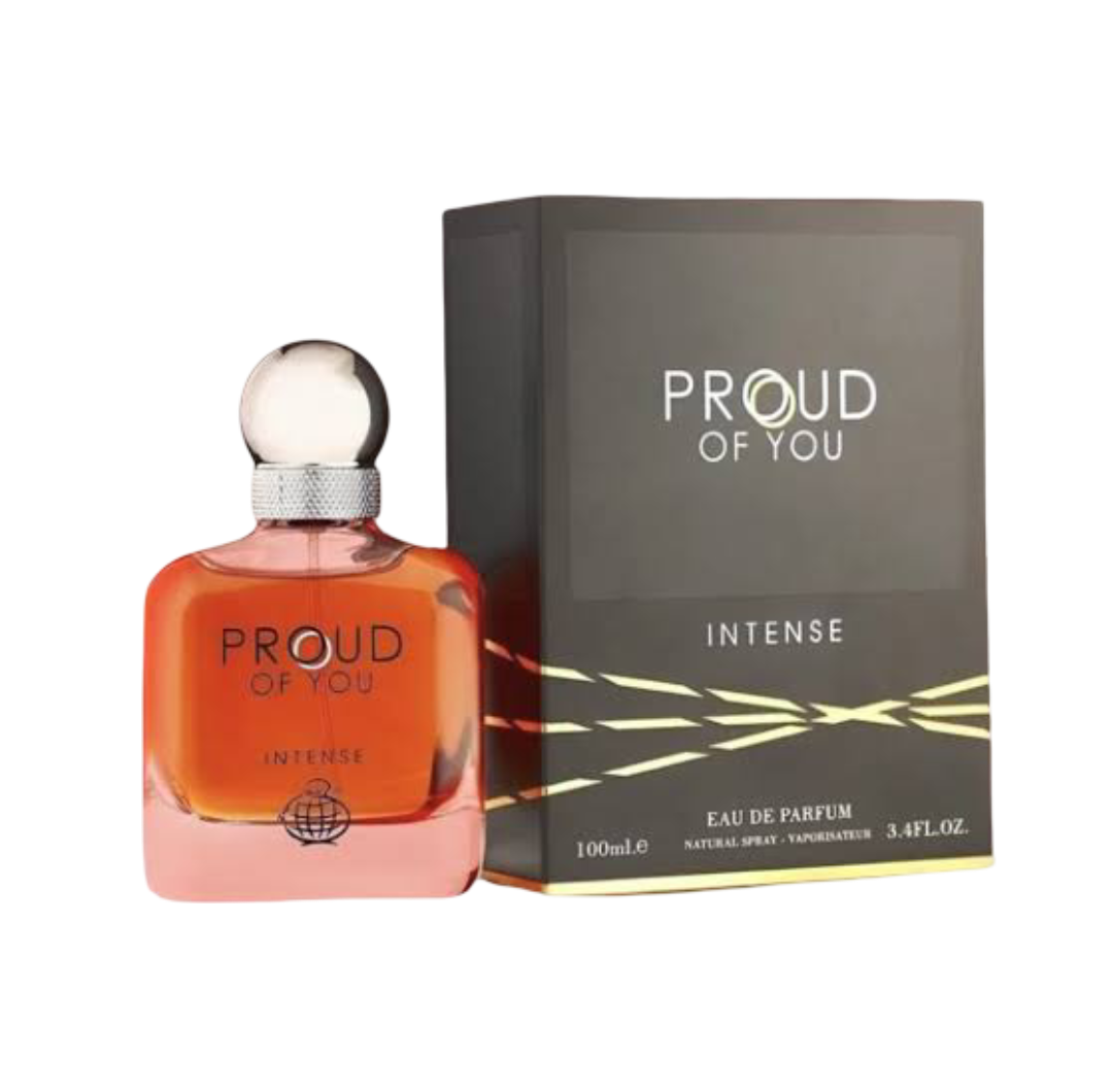 Fragrance World Proud Of You Intense is an oriental-woody fragrance with fougere accents. It tells a story of the excitement of a new and young love. Top notes include spices and violet, with the heart that combines lavender with sweet toffee caramel and cinnamon. The base ends with suede, vanilla and amber.